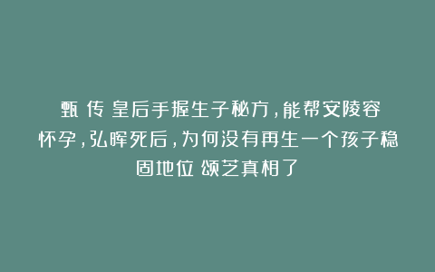 《甄嬛传》皇后手握生子秘方,能帮安陵容怀孕,弘晖死后,为何没有再生一个孩子稳固地位?颂芝真相了?