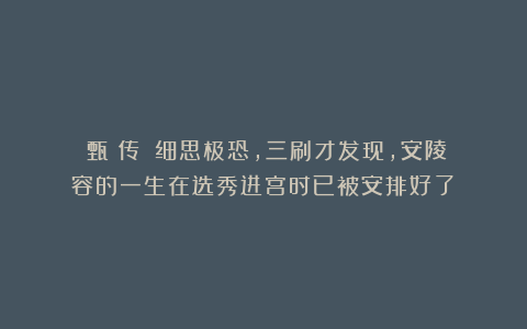 《甄嬛传》:细思极恐,三刷才发现,安陵容的一生在选秀进宫时已被安排好了!