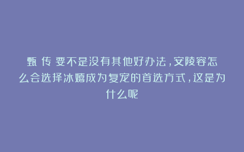 甄嬛传:要不是没有其他好办法,安陵容怎么会选择冰嬉成为复宠的首选方式,这是为什么呢?