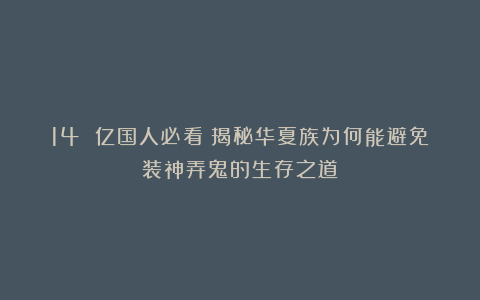 14 亿国人必看!揭秘华夏族为何能避免装神弄鬼的生存之道!