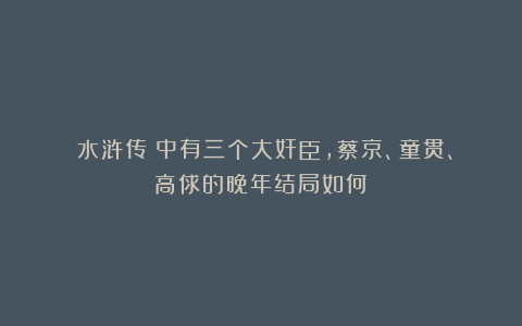 《水浒传》中有三个大奸臣,蔡京、童贯、高俅的晚年结局如何?