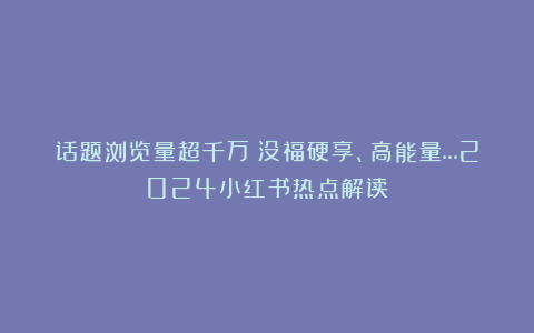 话题浏览量超千万!没福硬享、高能量…2024小红书热点解读