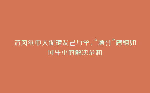 清风纸巾大促错发2万单,“满分”店铺如何4小时解决危机