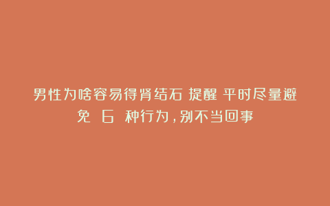 男性为啥容易得肾结石?提醒:平时尽量避免 6 种行为,别不当回事