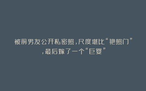 被前男友公开私密照,尺度堪比“艳照门”,最后嫁了一个“巨婴”