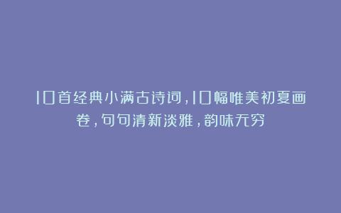 至此,十首小满古诗词分享完了,其中你最喜欢的小满诗词又是哪一首呢?欢迎在评论区留言分享,让我们一起共读美词佳句!