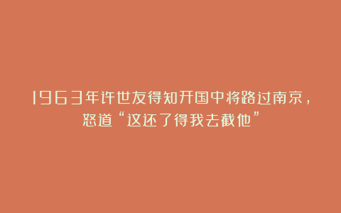 1963年,许世友将军得知开国中将将要路过南京,怒道:“这还了得,我得去截他”