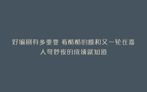 好编剧有多重要?看酷酷的滕和又一轮在喜人奇妙夜的成绩就知道