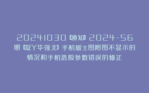 20241030【通知】2024-56期【捉Y华强北】手机版主图附图不显示的情况和手机选股参数错误的修正 1年前 原创 指标守中营 指标守中营 2024年10月30日 07:39 山东 【通知】2024-56期【捉Y华强北】手机版主图附图不显示的情况和手机选股参数错误的修正,购买过的用户联系免费索要或者到王战重新下载即可、 本次主要是针对手机的主图附图不显示信号做了修复,以及手机选信号提示参数错误做了修复的通知 【众筹】2024-56期【捉Y华强北】主图附图选股/信号不多一款专门抓妖的指标/手机电脑通用无未来函数 直接用手机版的TN6格式的指标导入手机即可,显示效果如下 标签:手机附图 上一篇文章广东省卫生专业技术人才职称标准:药学 下一篇文章【脑类器官】华西医院岑小波教授发文:暴露于全氟辛酸、全氟辛烷磺酸和全氟高铁会诱发脑类器官的阿尔茨海默病样神经病理学
