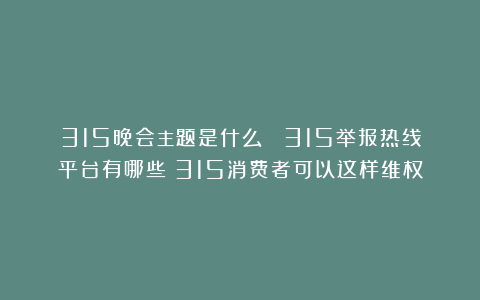 315主题不知不觉,三月份快过半了,而一年一度的315消费者权益日也不远了。每年这个时候大家都很好奇这一年的晚会主题。