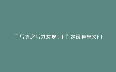 职场管理20年,我告诉你,工作就是没有意义的,硬要说一个意义,就是养活你!不要在谋生的事情上找过多的意义,生活才是你寻找意义的地方。