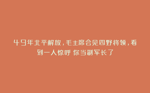 1949年,北平解放的消息传来,毛主席心情非常激动。当他刚刚入驻香山时,便迫不及待地接见了几位在平津战役中立下赫赫战功的四野将领。令毛主席没想到的是,自己竟然在这里遇到了一位多年来未曾见面的“老朋友”。看到对方,他不禁惊呼:“你竟然已经当上副军长了?”