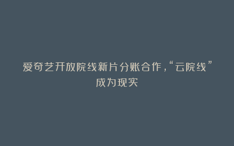 在持续探索云影院四年后,爱奇艺日前宣布面向院线新片开放分账合作模式。这一新政策适用于从上映首日至上线首播窗口期不超过90天的院线新片,允许这些影片在爱奇艺平台以会员分账的模式进行在线首播。满足分账合作条件的电影,在获得“网络剧片发行许可证”或“国家电影局电影公映许可证”后,均可通过爱奇艺号上传成片,洽谈分账合作。