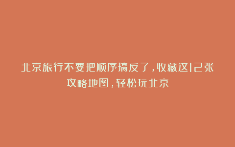 北京旅行不要把顺序搞反了,收藏这12张攻略地图,轻松玩北京