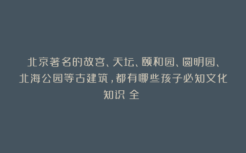 很多粉丝说,西贝爸,能不能把适合带孩子去的著名北京古建筑中的文化看点及知识,做一个汇总。我觉得这样的想法是一定要支持的,亲子关系融洽最好的方式之一就是带着他去文化游览~