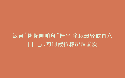 在经典战争电影《黑鹰坠落》中,AH-6“小鸟”直升机的表现绝对让很多人印象深刻。一架看上去体型娇小,载人都有点费劲的直升机,居然承担着快速载运特种部队甚至是火力支援的任务。