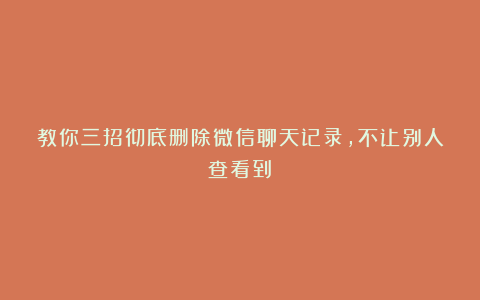 教你三招彻底删除微信聊天记录,不让别人查看到!