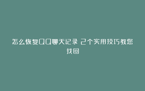 怎么恢复QQ聊天记录?2个实用技巧教您找回