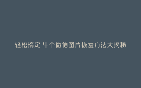 1年前在日常使用微信的过程中,我们经常会通过微信发送和接收大量图片,这些图片记录了许多重要的瞬间和信息。然而,误操作、手机故障或软件更新等原因可能导致我们不小心删除了这些宝贵的图片。 当这些重要的图片消失时 …