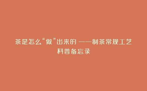 在各种关于茶的讨论中,我们常常会听到或者看到一些关于制茶工艺的术语名词。