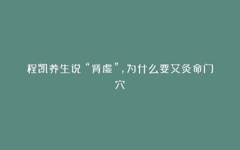 如果您肾虚了,肾虚腰痛、生殖功能、泌尿功能出现问题,以及主骨生髓的功能出现问题,包括神志功能出现异常的时候,不妨试试艾灸一下命门穴吧。