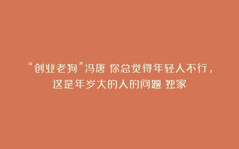 冯唐:创业九死一生,非常麻烦。从世俗角度讲,我都可以不干,为什么要当个“创业老狗”?