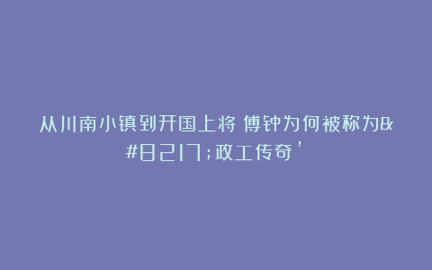 四川叙永,这个川南小城因盐运而繁华。1900年,傅钟出生在永宁河畔的书香世家。父亲是清末秀才,家中藏书既有《四书五经》,也有维新派的《时务报》[5]。少年傅钟常站在红崖山下眺望远方——这个爱读书的孩子,后来为何成了开国上将?