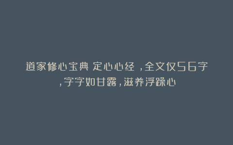 道家经典众多,《定心心经》仅五十六字,却字字珠玑,蕴含着深厚的智慧。