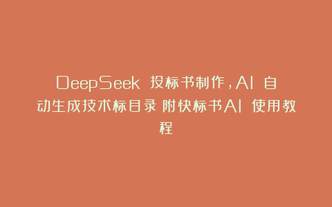 快标书AI通过接入 DeepSeek-R1大模型,利用该模型的深度思考能力,实现对招标文件的 智能解析 与 技术标目录的自动生成。让技术标目录的生成更加精准,这一创新功能 颠覆了传统的投标书编制模式,帮助投标企业 在更短时间内高效完成技术标部分的编制,确保评分点的全面覆盖,提升投标竞争力。