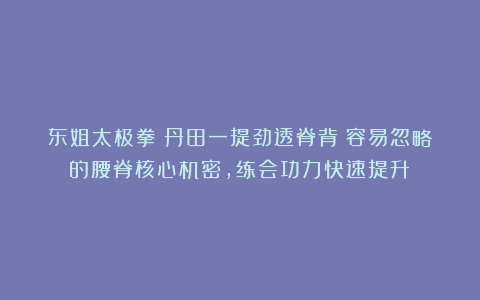 东姐太极拳:丹田一提劲透脊背!容易忽略的腰脊核心机密,练会功力快速提升! 5个月前 标签:一提劲东姐练会 上一篇文章太极拳高阶十式精要——内劲修炼与技法升华 下一篇文章医生私下用的 12 款中成药,快收藏!
