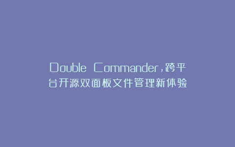 Double Commander是跨平台(Windows、Linux、macOS)的开源文件管理器,拥有双面板布局,受Total Commander启发并加入新功能和想法,方便用户管理文件和目录。