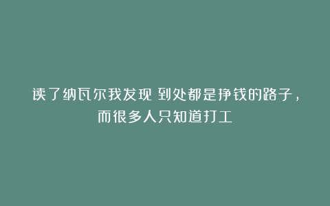 但是当我深入研读纳瓦尔的思想后,仿佛打开了一扇全新的大门,赫然发现这个世界到处都是挣钱的路子。