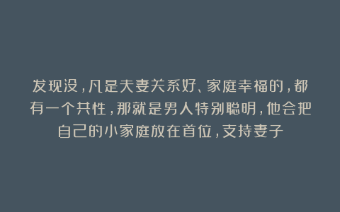 “凡是夫妻关系好、家庭幸福的,都有一个共性,那就是男人特别聪明,他会把自己的小家庭放在首位,支持妻子。”