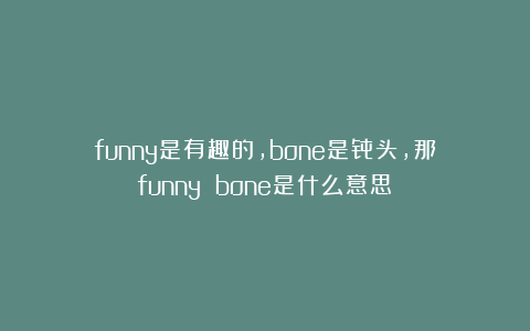 ①谐音梗: 肘部被撞击时,受压迫的是尺神经,而它恰好沿着肱骨(humerus)的下端走行。而肱骨 humerus 的发音 /’hjumərəs/ 又和诙谐的 humorous 一样。 老外玩谐音梗,就把肘部的这种麻感和 “诙谐幽默” 联系起来了。而且,funny bone的另外一个意思就是“幽默感”。 ②主流观点: 不过主流观点认为是因为尺神经被撞后感觉 “奇奇怪怪”(funny),又靠近骨头(bone),所以叫这个名字~ funny 除了“滑稽的”,还可表示“奇怪的、难以描述的”,比如 funny feeling 就指“异样的感觉”。🌰举个例子 He has a great sense of humor and always hits my funny bone.他有很强的幽默感,总能让我捧腹大笑。I hit my funny bone and now my arm feels a bit numb.我撞到了麻筋,现在我的胳膊感觉有点麻。