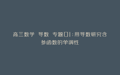 高三数学 导数 专题01:用导数研究含参函数的单调性 6个月前 标签:含参导数 上一篇文章2019年圆锥曲线选择题三角函数的应用 下一篇文章紧急更新!涵盖XP到Win11全方位系统,号称史上最强激活工具