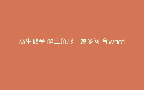 高中数学:解三角形一题多问(含word) 5个月前 标签:word一题高中数学 上一篇文章敦煌封存千年的唐代草书真迹,4万多字完好无缺,让写“丑书者”无地自容! 下一篇文章攻克慢性前列腺炎!中医帮你用好9组药,拯救男人于水火