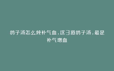 鸽子汤怎么炖补气血,这3道鸽子汤,最是补气增血 5个月前 1、火腿红枣鸽子汤! 2、鸽子银耳汤! 3、鲍鱼橄榄鸽子汤! 标签:增血补气血鸽子 上一篇文章练字就要举一反三,懂得这些规律很重要 下一篇文章超实用宝藏级软件推荐,让使用电脑成为享受!向流氓软件say no!