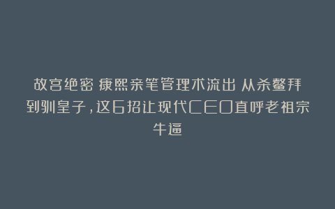 这一辈子在龙椅上坐得太久,把「管理」二字嚼得透了:所谓管理,从来不是居高临下的权衡,而是俯下身段的照见:照见事之本质,照见人之本性,更照见自己心中的万千沟壑。朕今以帝王视角,为诸君拆解治国要事。