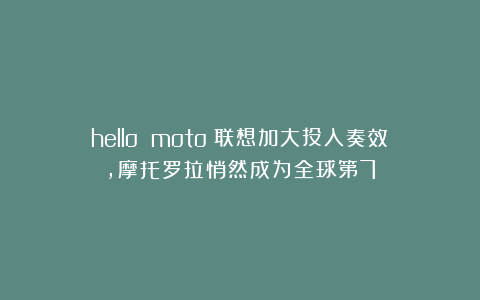 hello moto!联想加大投入奏效,摩托罗拉悄然成为全球第7