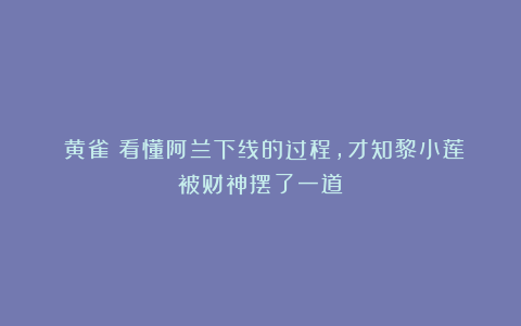 《黄雀》看懂阿兰下线的过程,才知黎小莲被财神摆了一道。