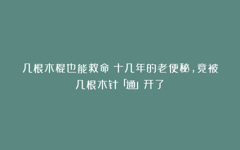 结果田老师拿木质的针在特定的穴位上点按,邻居就躺在床上接受治疗,一周后他的排便频率明显提高,排便也更顺畅了,连续治疗了半个月后,十几年的老便秘竟然能做到天天排便!