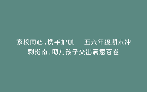 逝者如斯夫,不舍昼夜。随着炎热的夏季来临,校园里的栀子花即将开放,伴随着期末的脚步也越来越近,五年级的全市统考与六年级的全区毕业会考即将到来。这是孩子们检验学习成果的重要时刻,也是孩子们告别小学母校,走向初中的起点,同时更是家校协同发力的关键阶段。如何让每一位孩子以最佳状态迎战考场?教师、家长与学生三方需要共同携手,形成合力,为每个孩子的成长保驾护航!