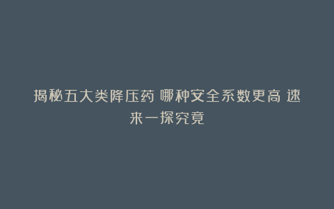 高血压是现代人常见的”沉默杀手”,许多患者面临选药难题,究竟哪种降压药更安全?哪种副作用更小?本文将为您揭开五大类降压药的神秘面纱,帮助您做出更明智的用药选择!