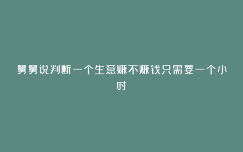 舅舅说判断一个生意赚不赚钱只需要一个小时! 5个月前 香格里拉爱分享 3天前 来自广东 内容来源:今日头条 继续阅读(剩余50% 我要举报 相关推荐 真正开始做生意后你会发现 商业言谈03-05 为什么说再小的生意都比打工发财快,网友只要敢迈出第一步 聪明的荷叶03-25 做生意三十年,我突然顿悟了几条道理,很有用 瑞坤朋友圈03-01 机智的晚风6E 1 生财有道💪…展开 3天前 没有更多啦~ 标签:做生意天前 上一篇文章舌像分析:小腹胀痛,尿频,清晰带下 下一篇文章养一个受欢迎的儿子,请经常对他说