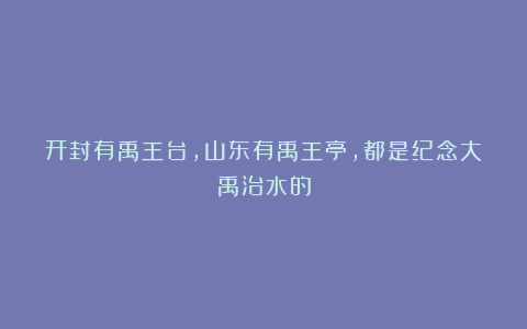 我们山东禹城有个禹王亭,开封府有个禹王台,禹迹千年后人纪念,这两座亭台,都是纪念大禹治水的故事。