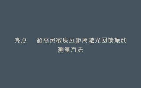 远程振动的灵敏检测在军事侦察、地质勘探及建筑结构健康监测等领域具有重要的应用价值,如何高灵敏、抗干扰地检测远距离振动信息已成为一大挑战。目前,电学式、影像式以及传统外差干涉式等各类振动测量方法难以兼顾高探测灵敏度、长工作距离和环境光抗干扰能力。激光回馈干涉技术通过激光腔内二次受激辐射的方式,放大远处返回的微弱光信号,且具备相干特性,具备实现远距离振动非接触式高灵敏检测的潜力。