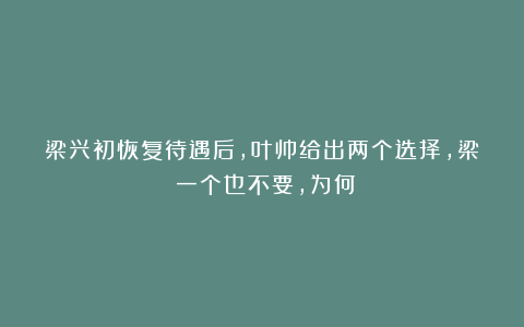 1981年,梁兴初恢复名誉待遇后,叶帅曾给他两个选择,但是梁兴初却一个都没要。