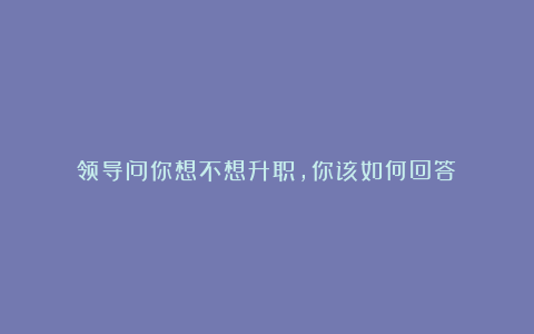 领导问你想不想升职这句话,信息量很大,分量很足。具体答案会因人而异。主要的回答方式可以从以下几个方面去思考: