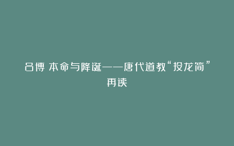 [13] 比如,南朝陆修静所编《太上洞玄灵宝仪》所存《元始灵宝告地土皇减罪言名求仙上法》所著“投龙简”的格式,似乎透露出些许“本命”书写的端倪:“灵宝赤帝先生(女云道士)某甲年若干岁某月生,命系九天,南斗领籍,愿神愿仙,长生度世,飞行上清,中皇九土、戊巳黄神、土府五帝,乞削罪录,勒上太玄,请诣中宫,投简记名,金钮自信,金龙传驿。”简文中虽然列有年岁、生月,却没有直接书写本命、降诞日。