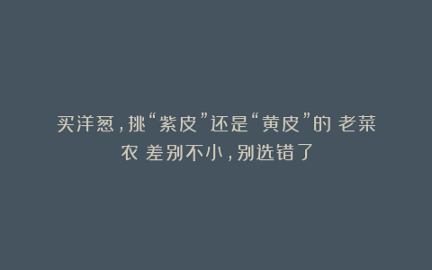 但有人却说买洋葱可不能挑错皮,这到底什么意思?
